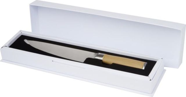Kochmesser mit Bambusgriff. Der Bambus wurde nach nachhaltigen Standards beschafft und produziert. Edelstahl, Bambusholz.