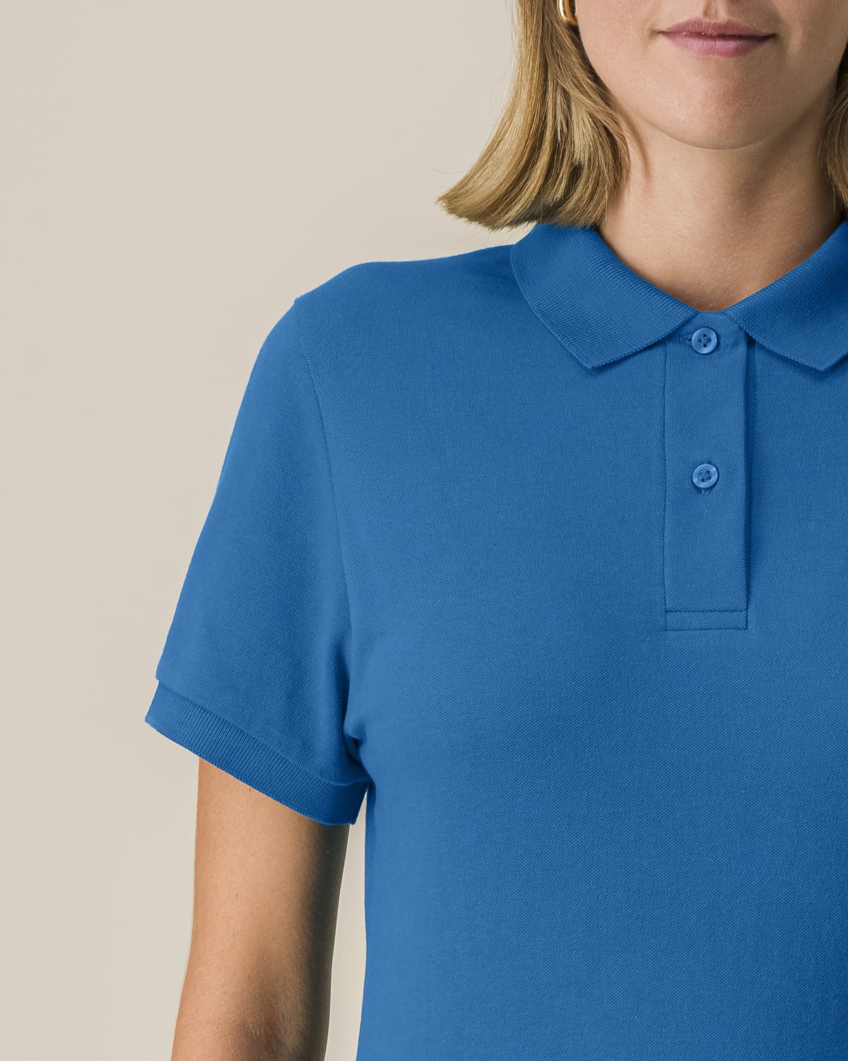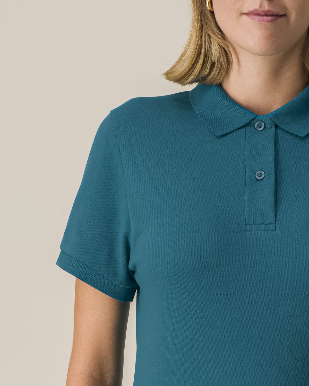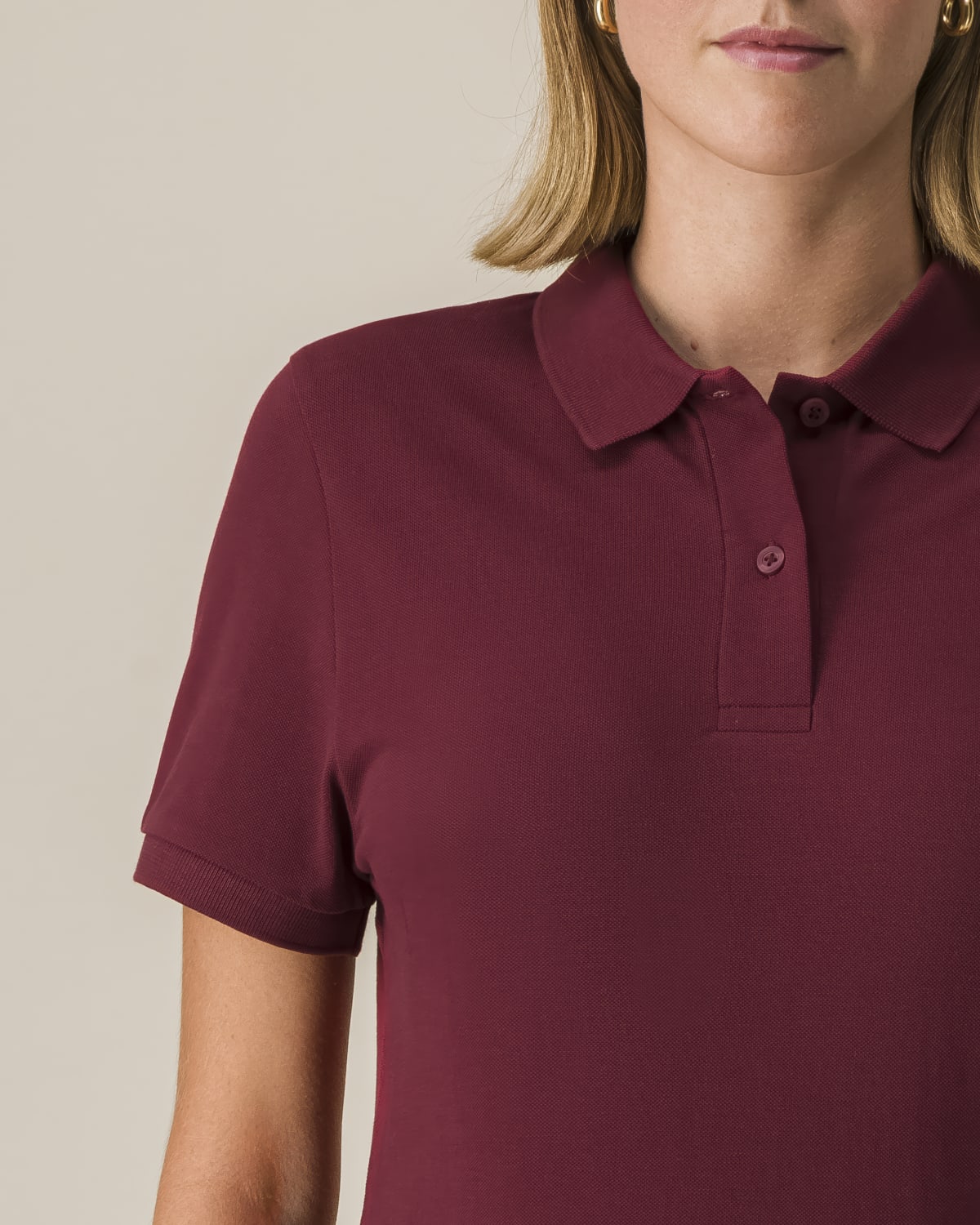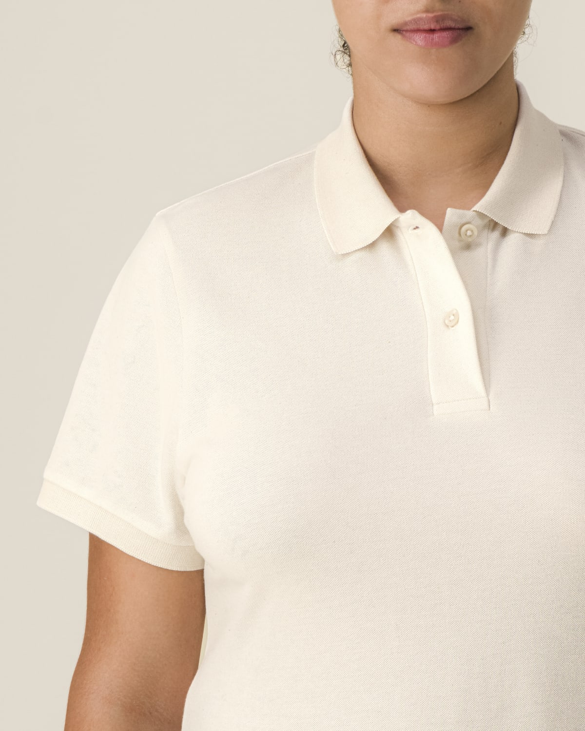 Set-in sleeve Flat knit rib on collar and sleeve hem Inside heavy single jersey back neck tape Front inserted placket with 2 buttons in matching body colour Slit and bartack finish at side seam hem Double needle topstitch at shoulder seams Bottom hem with narrow double needle topstitch