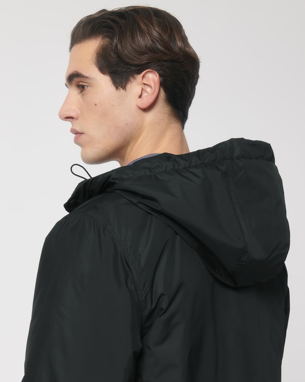 Double-layered hood Metal snaps at centre front Set-in sleeves Welt pockets Partially elasticated cuffs Adjustable hood opening and hem with elastic cord and plastic stoppers Diamond-quilted lining Internal concealed zip at left chest and hem for easy decoration access