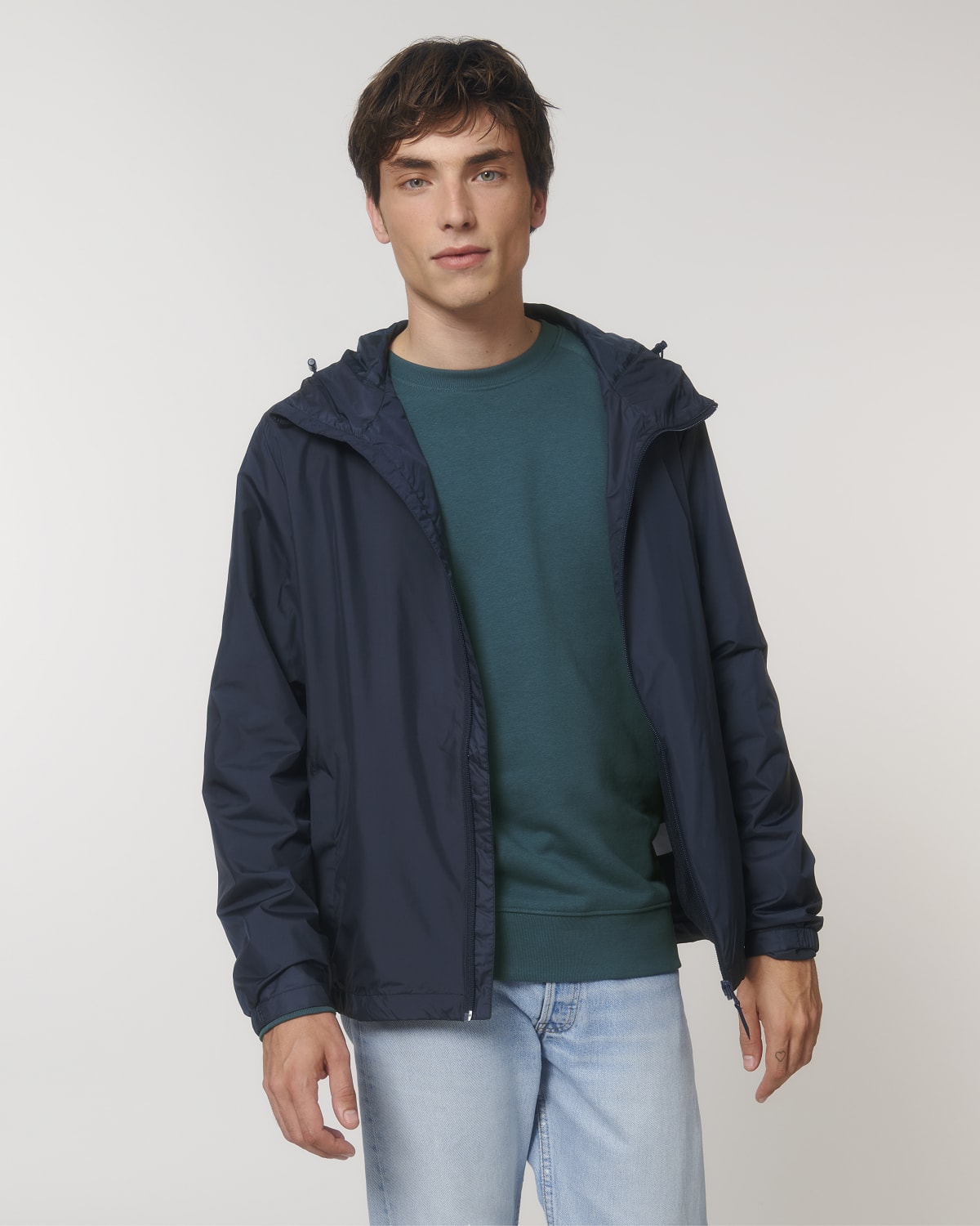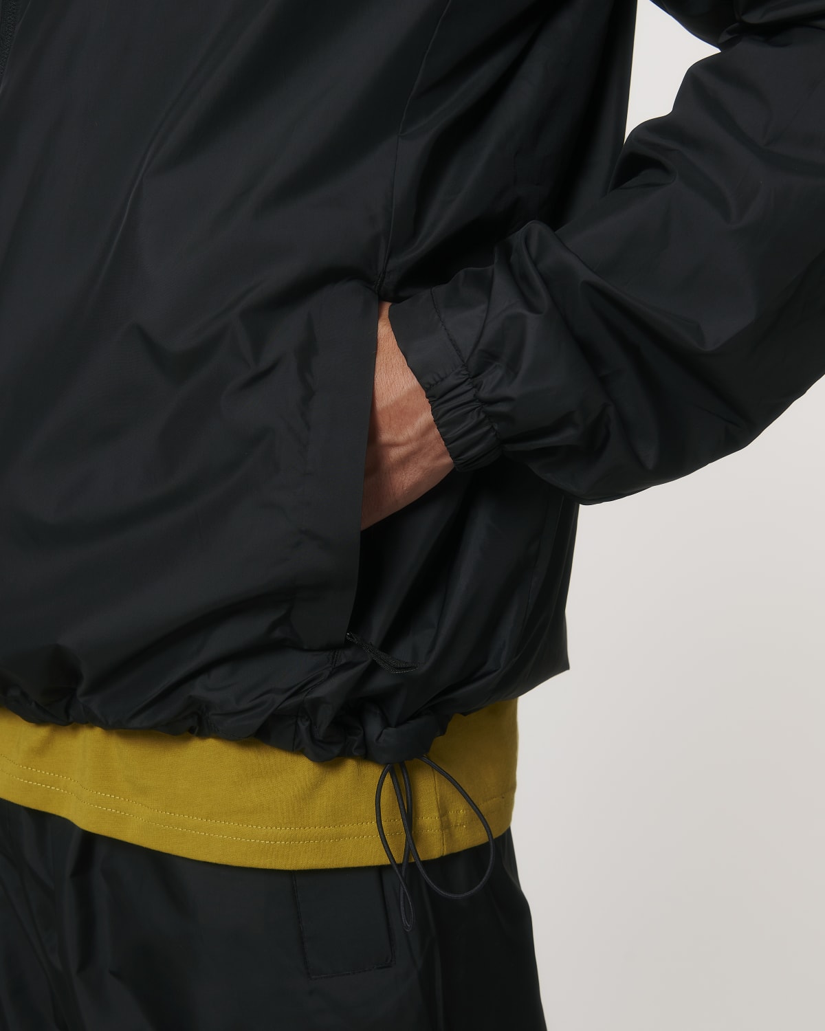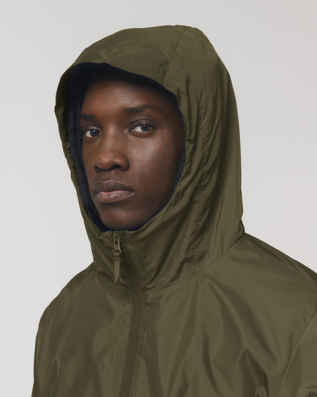 Nylon reverse coil zip at centre front with chin guard
