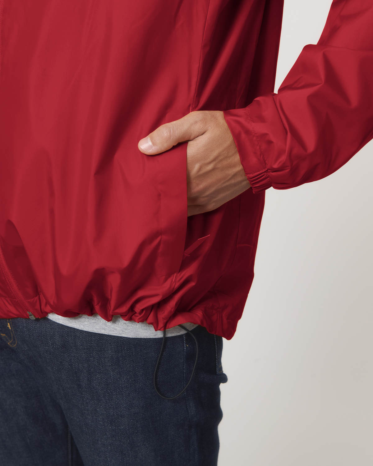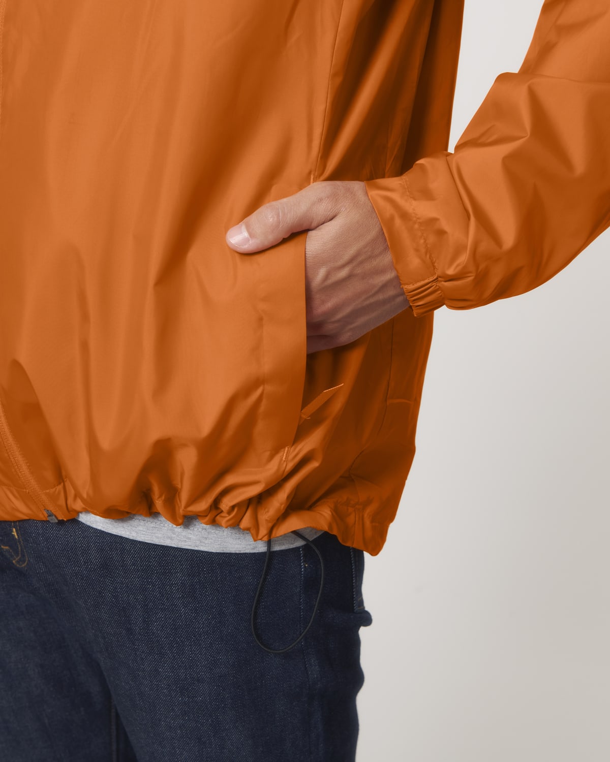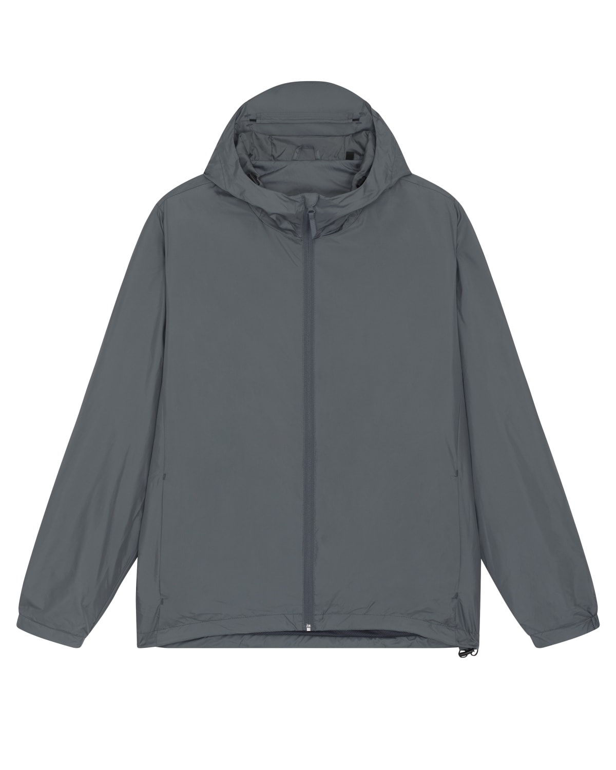 Adjustable hood opening and hem with plastic stoppers and elastic cord